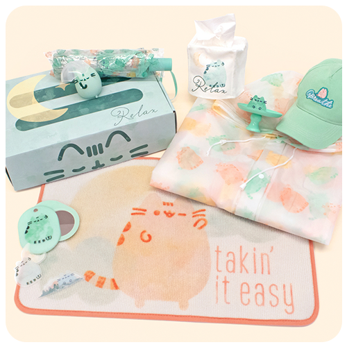 Spring has sprung, and the Pusheen Box has got you covered with all of the exclusive rainy day accessories and apparel you'll need in this quarter’s box! Each Pusheen Box comes with a collectible vinyl figure. Add this rainy day Pusheen to your collection! April showers bring May flowers, but the umbrella in the Spring 2021 Pusheen Box has got you covered! Rain or shine, this Pusheen baseball cap will always look good! Rainy days will become your favorite days thanks to this stylish Pusheen raincoat! This compact mirror is perfect for touch-ups on the go! Take it easy and protect your floors from the rain and mud with this plush Pusheen floor mat! Sit back and enjoy the scent of your favorite candle on this adorable Pusheen candle holder! Add some Pusheen flair to your everyday necessities with this tissue box cover! These Pusheen bookmarks are the perfect addition to rainy days curled up with a good book.