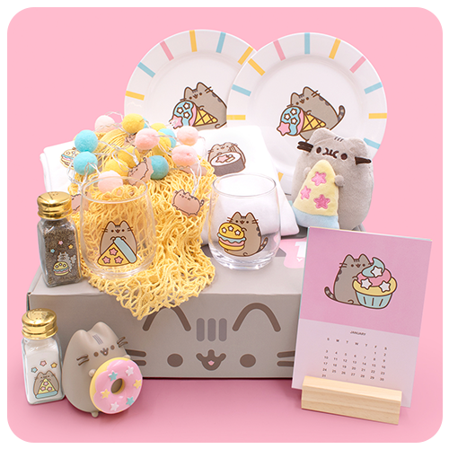 Commemorate a decade of Pusheen with all of the exclusive and limited-edition goodies in the Winter 2020 10th Anniversary Pusheen Box! Add this a-glaze-ing Pusheen donut vinyl to your collection! This fashionable color block sweatshirt featuring Pusheen with some yummy sushi will keep you warm and cozy all year long! This reusable tote bag with Pusheen charm helps make all of your errands more fun! You'll want a pizza this cuddly Pusheen plush! Bring some Pusheen flair to your desk or office space with this cute calendar! These fun string lights add ambiance to any room! This colorful plate set is the perfect addition to any Pusheen lover's kitchen! These adorable salt and pepper shakers will add some Pusheen flavor to every meal!